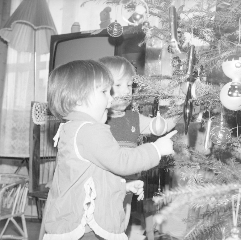 Jednym z najbardziej rozpoznawalnych elementów świąt były choinki ozdabiane charakterystycznymi bombkami. Najczęściej były to szklane ozdoby w kształcie muchomorków, szyszek, sopli czy geometrycznych form. Wiele z nich było ręcznie malowanych lub dmuchanych, przez co każda bombka miała swój niepowtarzalny wygląd. Często przechodziły z pokolenia na pokolenie i były traktowane jak rodzinne pamiątki.