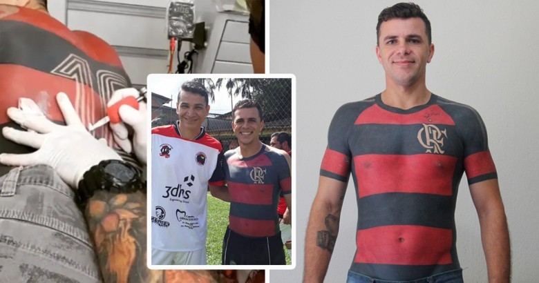 Niektórzy kibice mają szalony sposób okazywania miłości do swojego klubu. 33-letni Maurício dos Anjos z Brazylii przeszedł do historii fanów piłki nożnej, gdy postanowił… wytatuować sobie na ciele koszulkę swojego ukochanego klubu Flamengo.