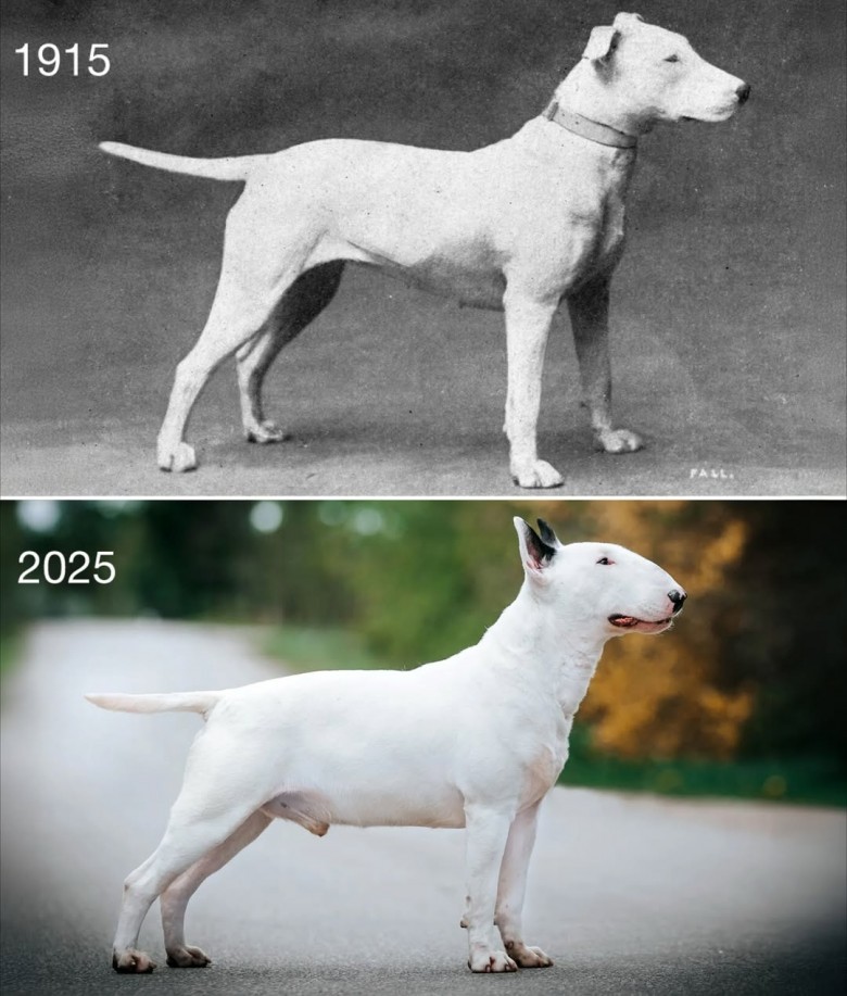 Bull terrier to jedna z ras psów, które zmieniły się najbardziej na przestrzeni ostatniego stulecia. Porównanie zdjęć z początku XX wieku z tymi współczesnymi pokazuje, jak bardzo selektywna hodowla potrafi wpłynąć na wygląd zwierząt - czasem do tego stopnia, że trudno uwierzyć, że to ta sama rasa.