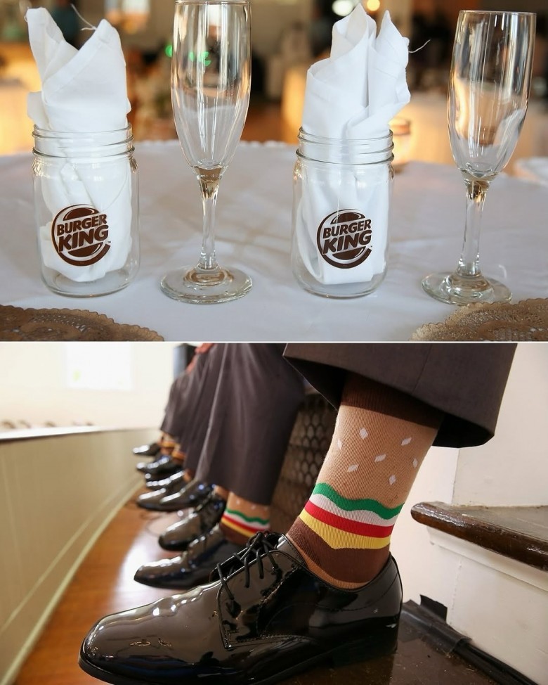 Uroczystość odbyła się latem 2015 roku i była utrzymana w lekkim, humorystycznym tonie. Goście nosili papierowe korony Burger Kinga, pan młody miał spinki do koszuli z logo sieci, a drużbowie kolorowe skarpetki stylizowane na charakterystyczne barwy marki. Para podkreślała, że choć wszystko wygląda zabawnie, przyjaźnią się od lat i ich związek nie ma nic wspólnego z reklamą. Jednak fakt, że ich nazwiska przypadkowo układają się w nazwę globalnej sieci restauracji, sprawił, że ślub zyskał niecodzienny rozgłos.