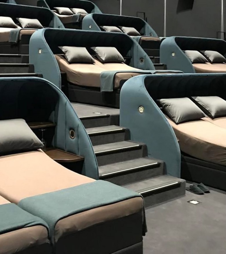 Każde łóżko wyposażone jest w regulowane oparcie, poduszki, kołdrę i świeżą pościel. Przed każdym seansem obsługa wymienia całe nakrycie, co było jednym z kluczowych elementów koncepcji. Do tego dochodzą małe stoliki, możliwość zamówienia jedzenia i ogólny klimat, który ma dawać poczucie prywatności i komfortu.