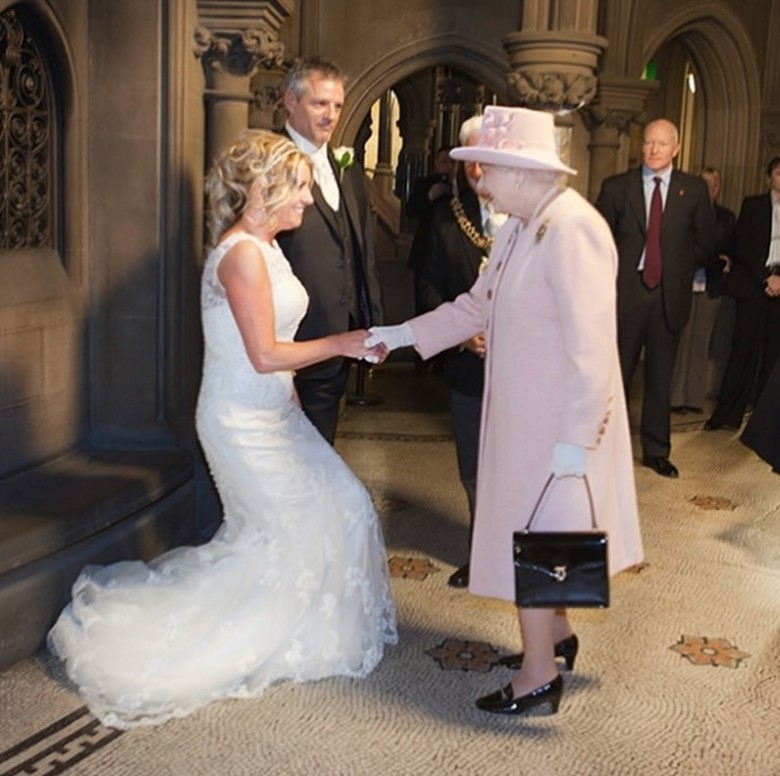 Po zakończeniu ceremonii ślubnej nowożeńcy natknęli się na królewską ochronę, która - widząc ich w ślubnych strojach - zapytała, czy chcieliby spotkać monarchinię. Chwila później królowa Elżbieta II podeszła do młodej pary, pogratulowała im i stanęła do wspólnego zdjęcia. To właśnie ta fotografia obiegła później świat i stała się źródłem wielu przeróbek oraz fałszywych historii.
