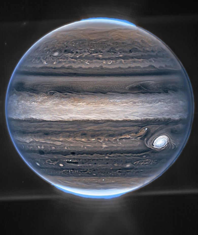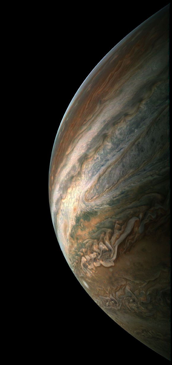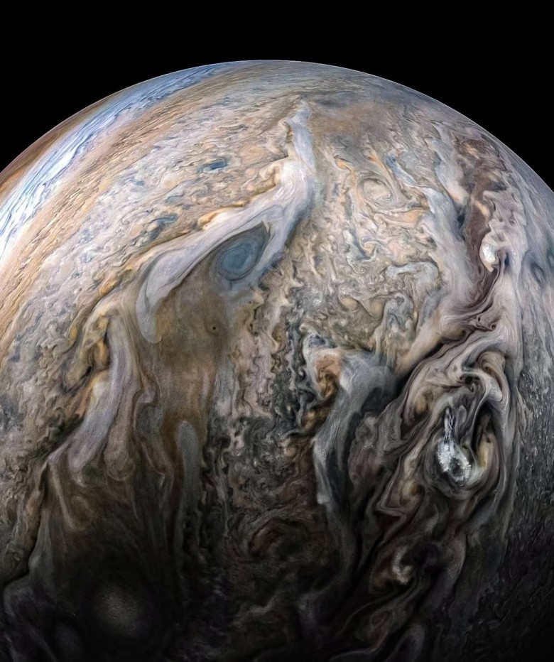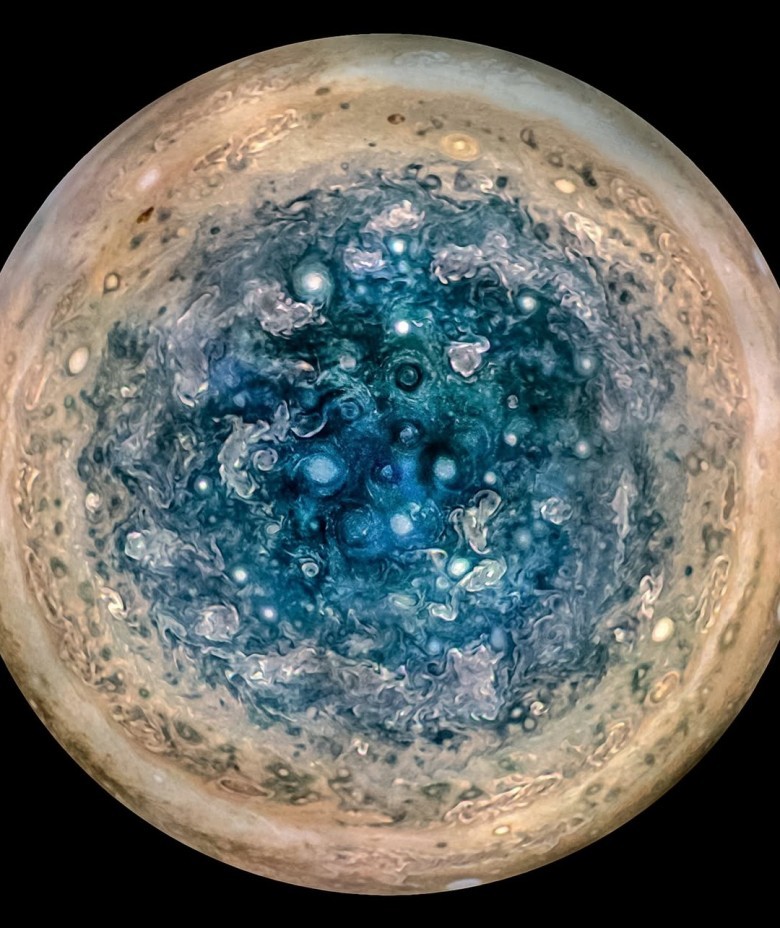 Na zdjęciach widać wspaniałe szczegóły atmosfery gazowego olbrzyma – wirujące pasy chmur, gigantyczne burze oraz ogromne systemy cyklonów, szczególnie w rejonach okołobiegunowych. To pokazuje, jak dynamiczna i złożona jest atmosfera największej planety w Układzie Słonecznym.