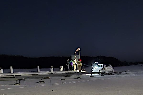 Na miejscu zastali 59-latka i uszkodzoną Skodę. Szybko wyszło na jaw, że nie było żadnej latarni. Kierowca wjechał na zamarzniętą taflę jeziora Jeziorak i na wysokości ul. Kajki doprowadził do zderzenia z pomostem przeznaczonym do cumowania jachtów.