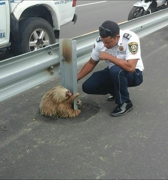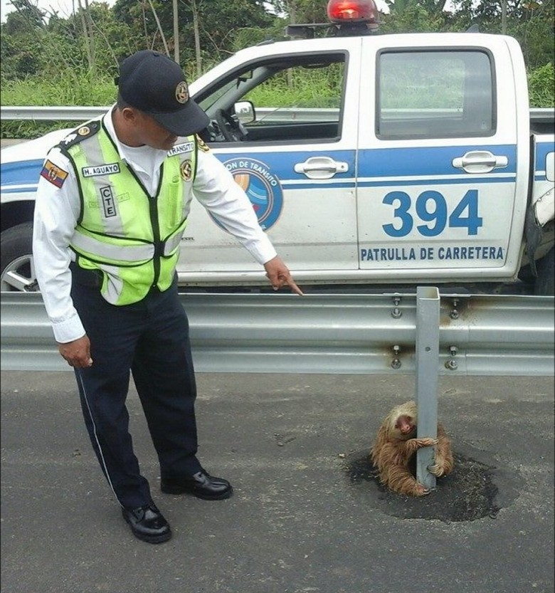 Policjanci z Ekwadoru uratowali przestraszonego leniwca z ruchliwej autostrady. Historia, która podbiła internet