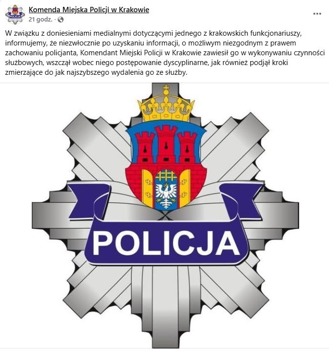 Fundacja twierdzi też, że w rozmowach pozwalał sobie na treści o charakterze seksualnym, w tym miał tłumaczyć dziewczynce różne zachowania intymne. Gdy działacze nabrali pewności, że za profilem stoi czynny policjant, w styczniu 2026 roku mieli powiadomić Biuro Spraw Wewnętrznych Policji przy Komendzie Wojewódzkiej w Krakowie.
