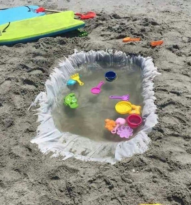 7. Zasłonka od prysznica może posłużyć do skonstruowania prowizorycznego basenu na plaży.