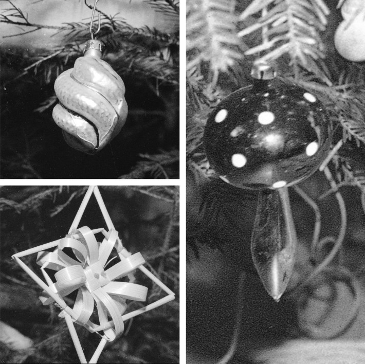 Jednym z najbardziej rozpoznawalnych elementów świąt były choinki ozdabiane charakterystycznymi bombkami. Najczęściej były to szklane ozdoby w kształcie muchomorków, szyszek, sopli czy geometrycznych form. Wiele z nich było ręcznie malowanych lub dmuchanych, przez co każda bombka miała swój niepowtarzalny wygląd. Często przechodziły z pokolenia na pokolenie i były traktowane jak rodzinne pamiątki.