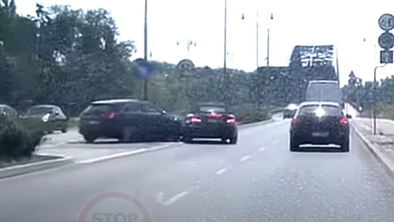 W pewnym momencie w kadrze pojawia się BMW które jedzie na prost. Z lewej strony pojawia się ciemne auto (według autora nagrania Ford). Wydawałoby się, że auta nie stoją sobie na drodze. Co więcej mamy wrażenie, że kierowca Forda zatrzymał się aby ustąpić pierwszeństwa.