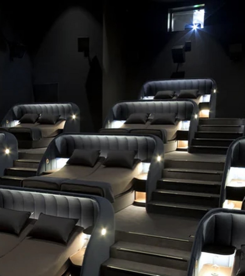 Każde łóżko wyposażone jest w regulowane oparcie, poduszki, kołdrę i świeżą pościel. Przed każdym seansem obsługa wymienia całe nakrycie, co było jednym z kluczowych elementów koncepcji. Do tego dochodzą małe stoliki, możliwość zamówienia jedzenia i ogólny klimat, który ma dawać poczucie prywatności i komfortu.