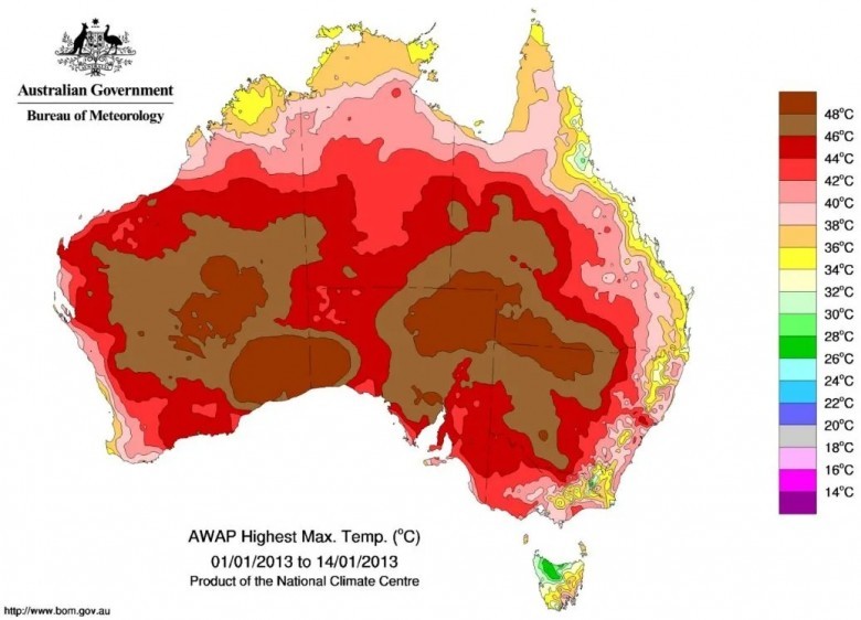 Kontrast pogodowy: w tym samym czasie Europa doświadczała mrozów, a Australia ekstremalnych upałów. Źródło: Bureau of Meteorology / serwisy meteorologiczne
