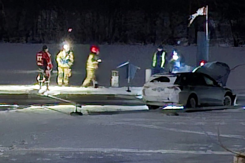 Na miejscu zastali 59-latka i uszkodzoną Skodę. Szybko wyszło na jaw, że nie było żadnej latarni. Kierowca wjechał na zamarzniętą taflę jeziora Jeziorak i na wysokości ul. Kajki doprowadził do zderzenia z pomostem przeznaczonym do cumowania jachtów.