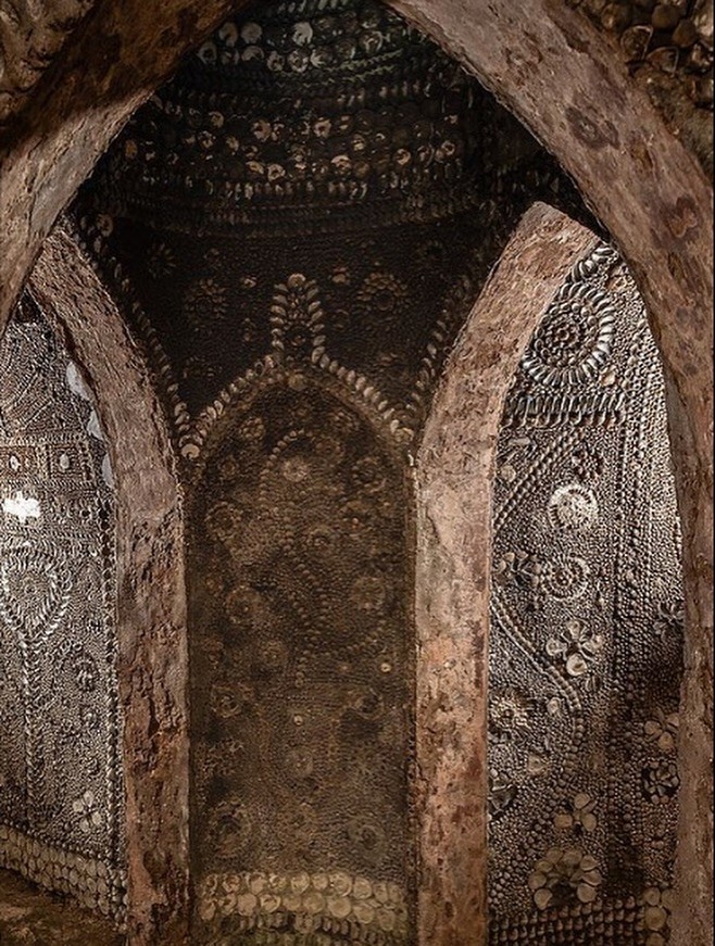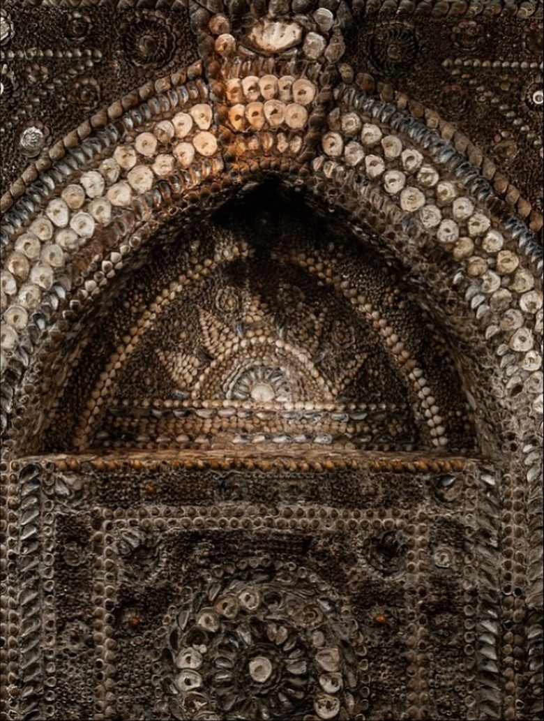 Wnętrze zdobią różne wzory przypominające symbole religijne, gwiazdy, słońca i kwiaty. Niektóre z nich mają charakter geometryczny, inne przypominają starożytne znaki. Gra świateł na muszlach tworzy wyjątkowy efekt - wnętrze mieni się kolorami i wydaje niemal magiczne wrażenie.