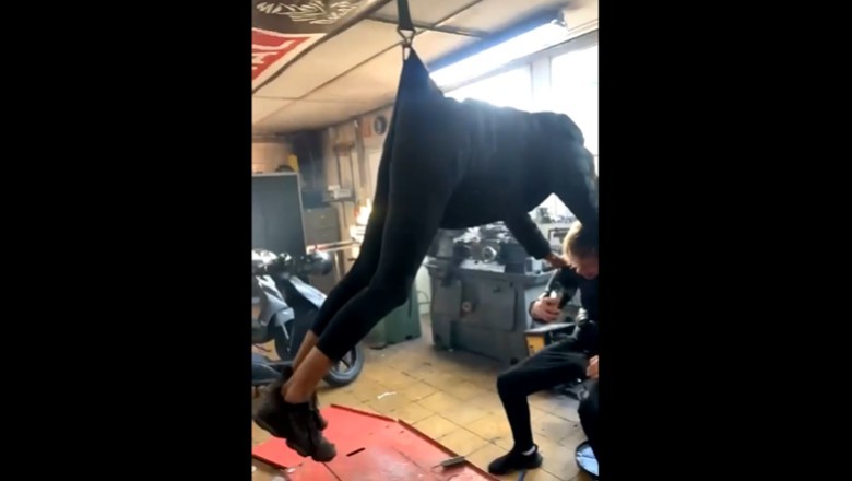 Gość widoczny na nagraniu postanowił sprawdzić, czy szlufka wytrzyma jego ciężar. Wszystko szło dobrze i nawet przez chwilę się utrzymywał. Do czasu aż się nie zaczął szarpać i cały się puścił. Długo to nie trwało, a z impetem wylądował na podnośniku. Dziwimy się jednak, że tak szybko wstał i nic go nie bolało. Byliśmy pewni, że nie wszystkie jego żebra wytrzymały kontakt z podnośnikiem.