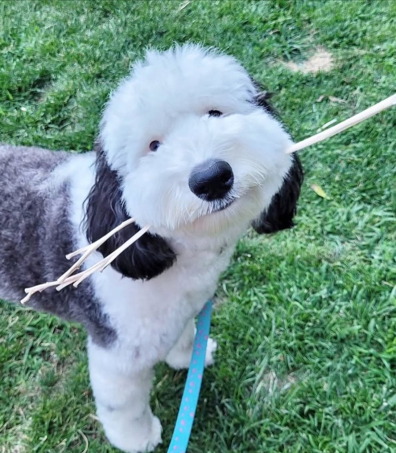 Bayley to nie animacja ani efekt sztucznej inteligencji. To prawdziwy pies rasy sheepadoodle, czyli krzyżówka owczarka staroangielskiego i pudla. Charakterystyczna biała mordka, czarne opadające uszy i duży, okrągły nos sprawiają, że na wielu zdjęciach wygląda niemal jak rysunkowa postać.