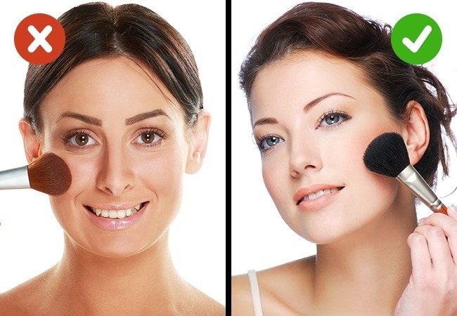Przyjęła się zasada, że róż powinien być nałożony na jabłuszkach policzków (czyli najbardziej wypukłej części, gdy się uśmiechasz), jednak tak naprawdę dotyczy to tylko młodych dziewcząt. Ten rodzaj aplikacji podkreśla zmarszczki, więc jeśli chcesz uzyskać efekt liftingu za pomocą różu, nałóż go poziomo - wzdłuż kości policzkowych do skroni.