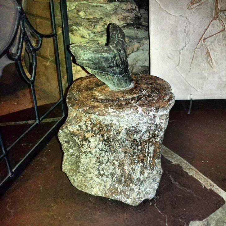 10. Ząb megalodona wbity w kręg wieloryba