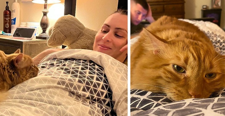 1. "Mój kot wie, że jego siostra jest w drodze i próbuje się do niej przytulić."