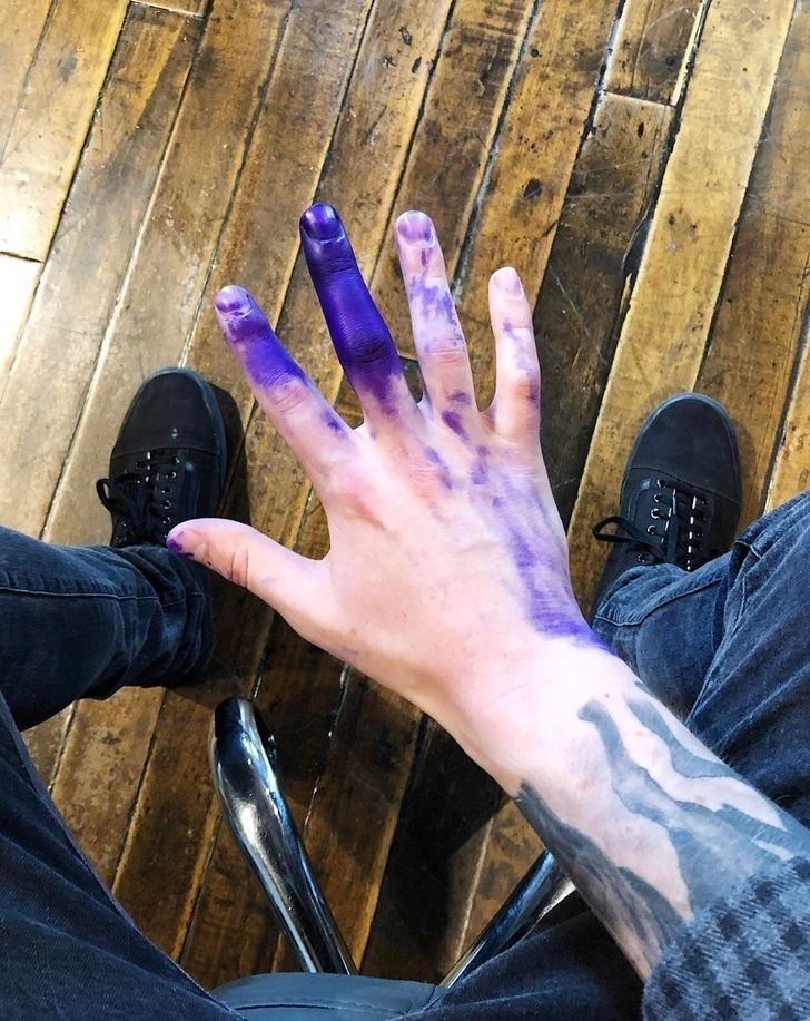 3. "Mój kolega z pracy wlał tusz do drukarki do jednej z moich rękawic. Miną minimum dwa tygodnie zanim się tego pozbędę."