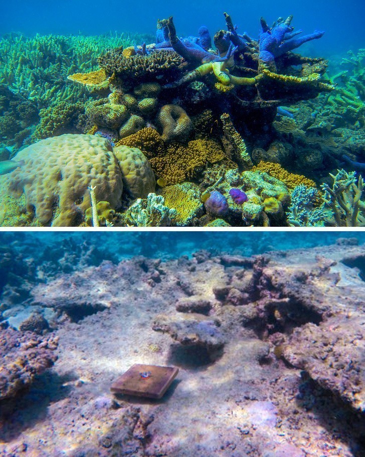 6. Zmiana klimatu spowodowała zmniejszenie populacji koralowców Wielkiej Rafy Koralowej o 89%.