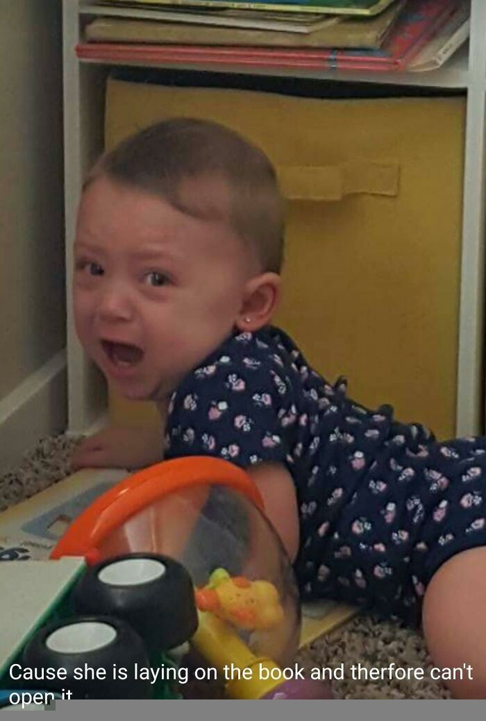 12. "Płacze, bo leży na książce, przez co nie może jej otworzyć."