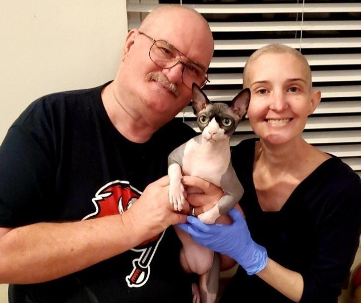 13. "Straciłam włosy, a tata zgolił swoje na znak solidarności. Oczywiście musieliśmy zrobić sobie zdjęcie z motywem 'łyse jest piękne'."