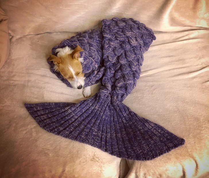 5. "Pippet zasnęła w kocu, więc ułożyłam go w harmonijkę i zmieniłam ją w syrenkę. Niczego nie żałuję."