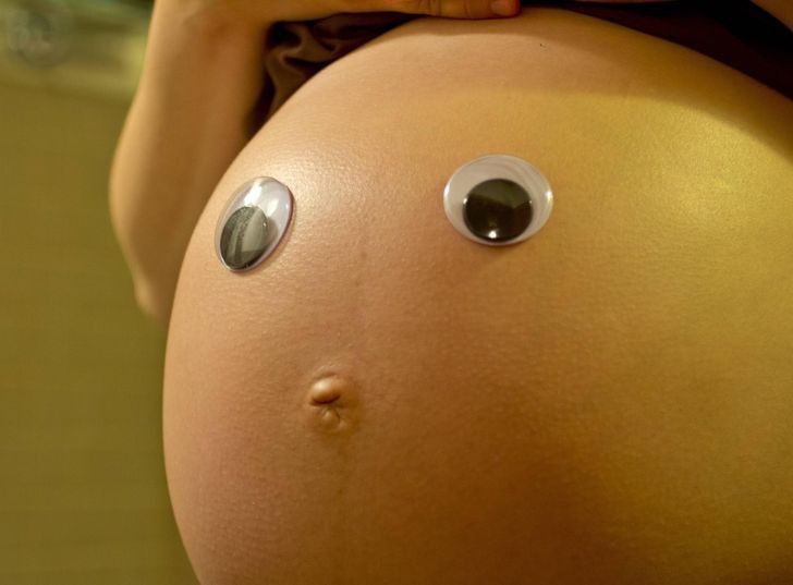 11. "Przykleiłem oczy do brzucha mojej ciężarnej żony. Rezultat? Pełny sukces."