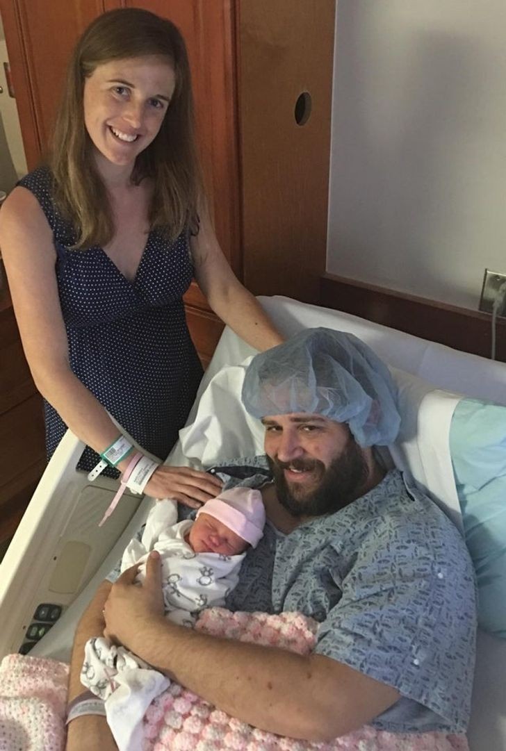 15. "Żona wyglądała naprawdę szczupło już 24 godziny po porodzie, więc zamieniliśmy się miejscami, by zrobić sobie to zdjęcie."