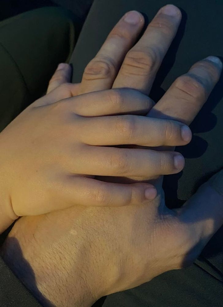 8. "Oglądałem film z moim 5-letnim synem, gdy nagle położył swoją dłoń na mojej i powiedział: 'Kocham cię, tatusiu. Jesteś dobrym tatą.'"