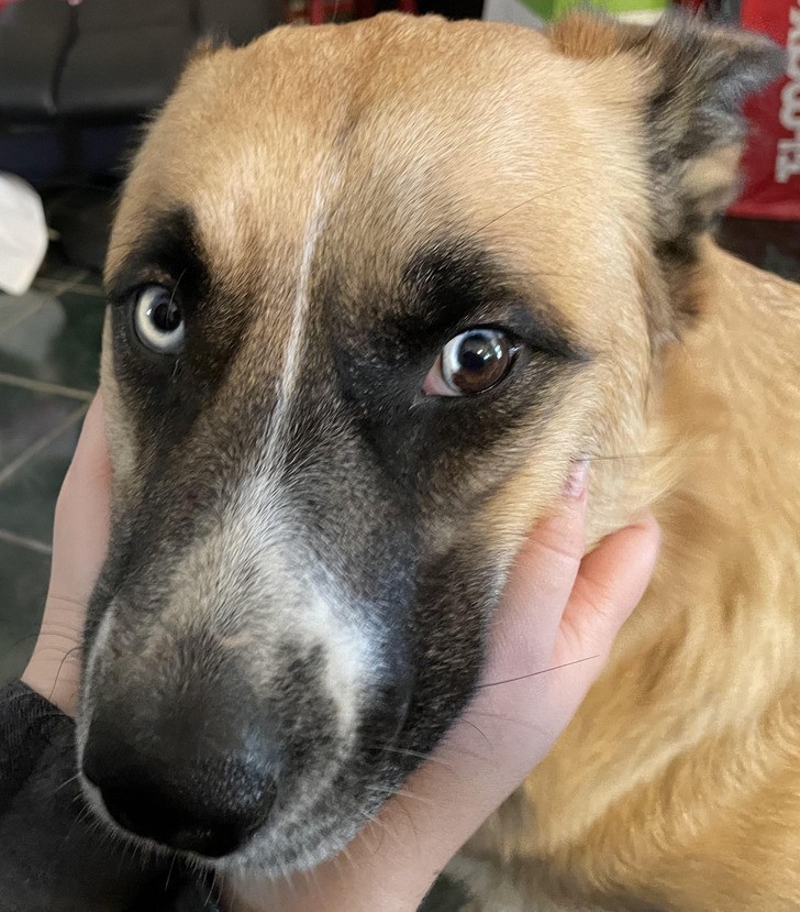 2. "Pies mojej dziewczyny ma różnokolorowe oko."