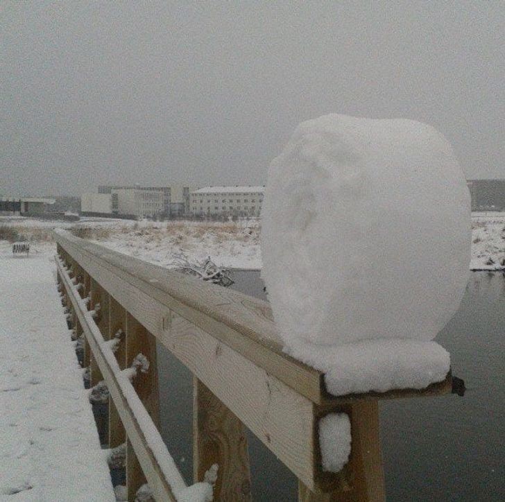 1. "Zwinąłem śnieg na barierce w satysfakcjonującą rolkę."