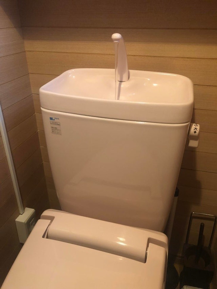 13. Ta japońska toaleta posiada wbudowany zlew połączony ze spłuczką, dzięki czemu oszczędzasz wodę.