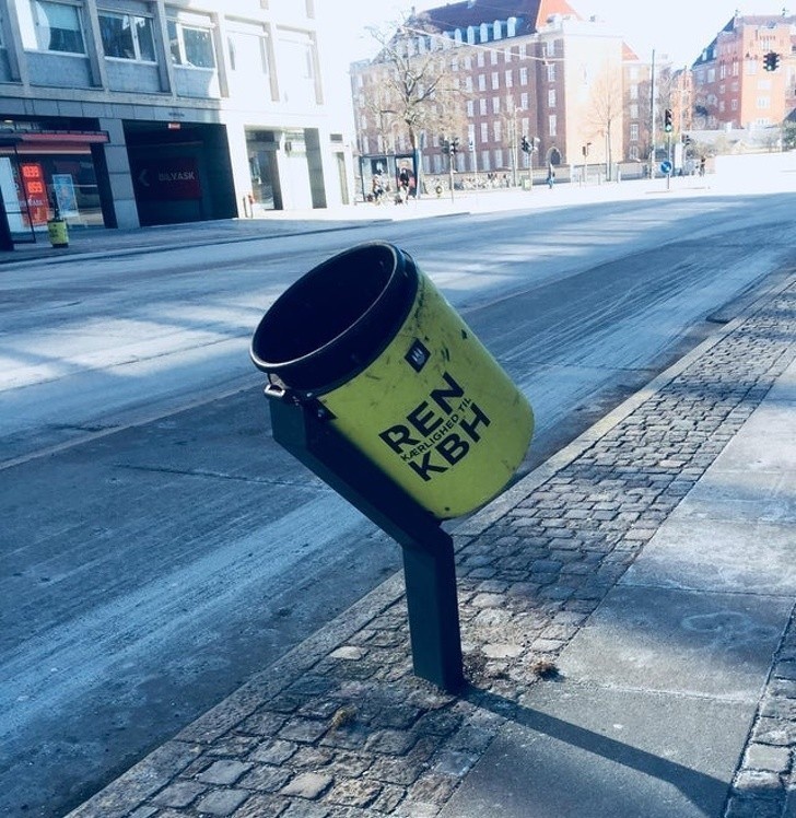 14. Śmietniki w Kopenhadze są mocowane pod kątem aby ułatwić rowerzystom wyrzucanie śmieci.