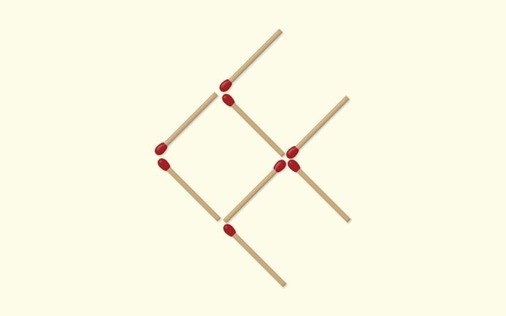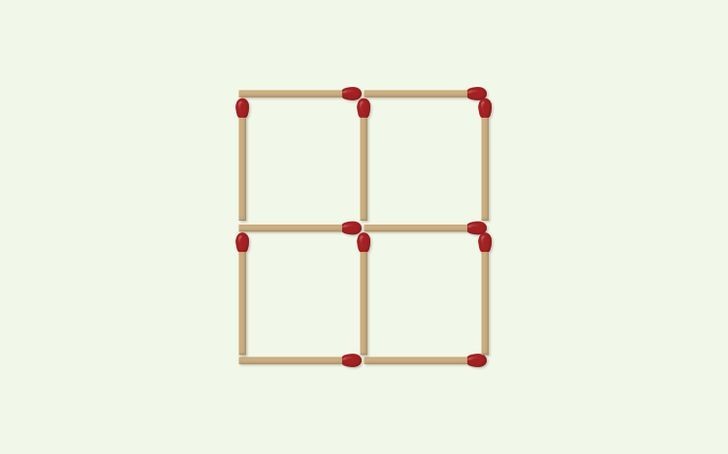 15. Przesuń cztery zapałki tak, by uformować trzy kwadraty.