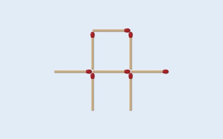 9. Usuń trzy zapałki tak, by pozostały trzy kwadraty.