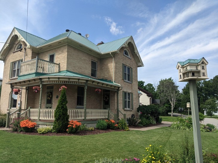 6. "Domek dla ptaków, będący miniaturą prawdziwego domu"