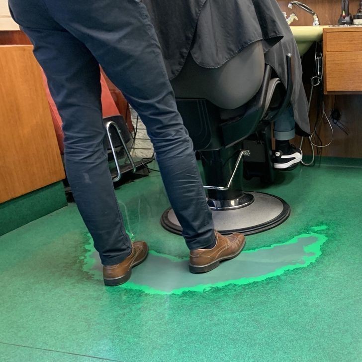 4. "Podłoga u mojego fryzjera. Zawsze pracuje sam i używa jednego krzesła."
