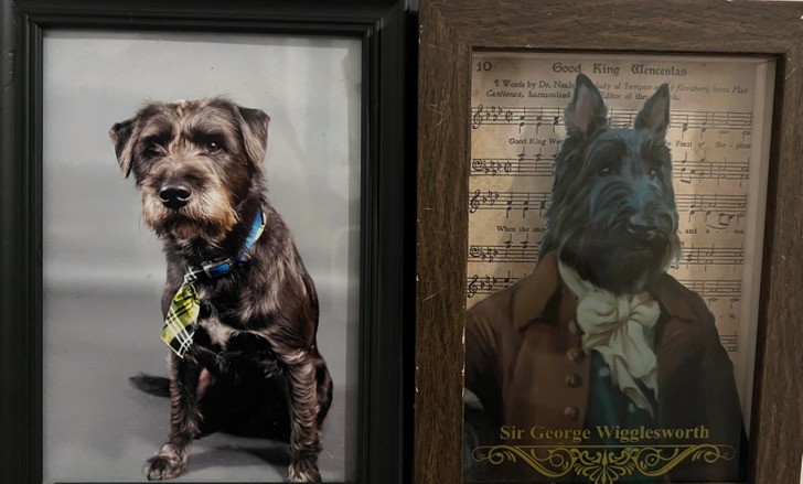 14. "Na zdjęciu z lewej jest mój pies. Zdjęcie z prawej znalazłam w sklepie ze starociami. Mówię wszystkim, że to pradziadek mojego psa."