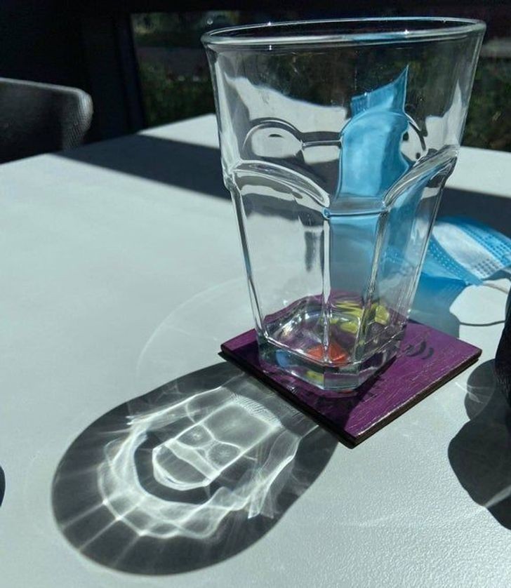 2. "Znalazłam czaszkę Barta Simpsona w cieniu rzucanym przez moją szklankę."