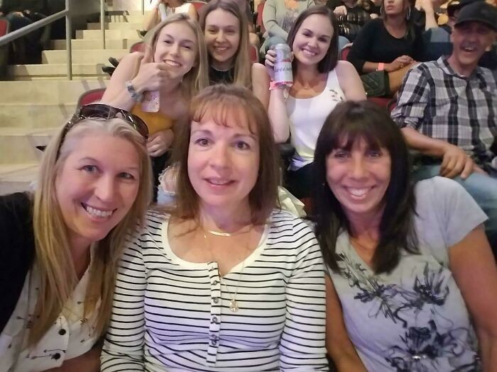 15. 15. "To moja mama (z lewej) i jej przyjaciółki na koncercie. Wygląda na to, że cofnęły się w czasie i zaliczyły fotobombę na własnym zdjęciu."