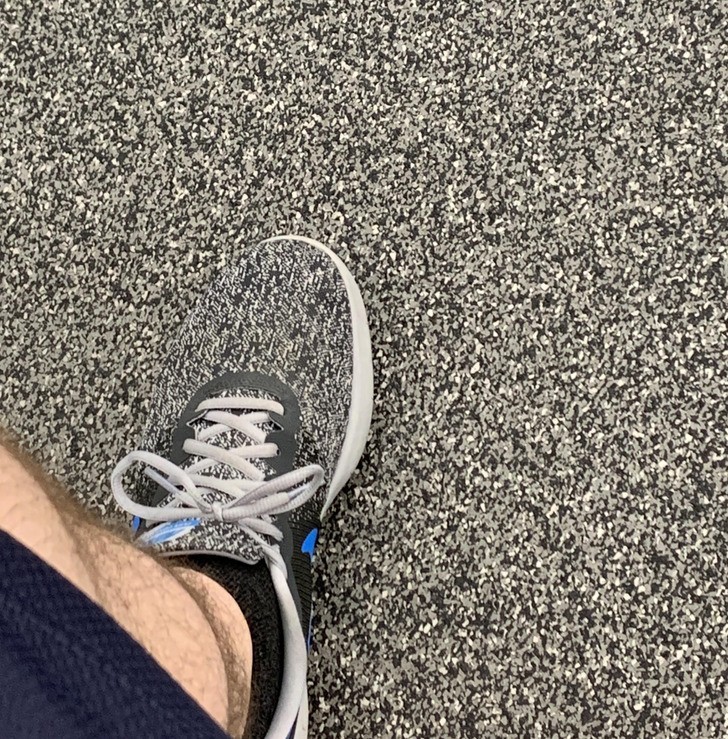 4. "Moje sneakersy na tle podłogi na siłowni"