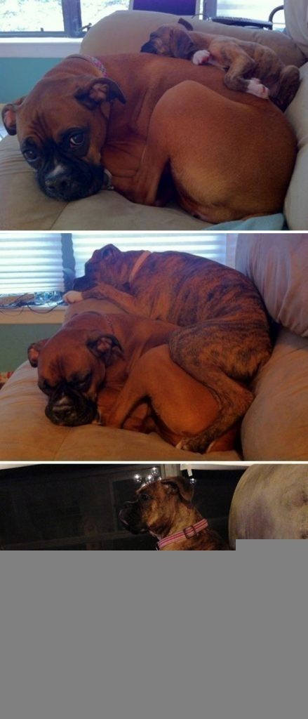 1. „Nasz mały bokser od małego uwielbiał leżeć na starszym psie. Po czasie nic się nie zmieniło”