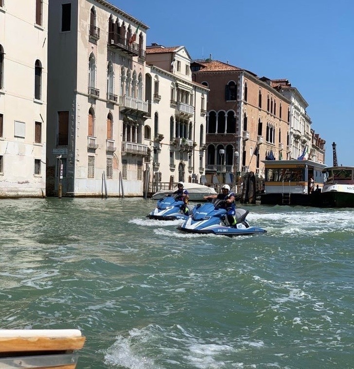 2. Policja w Wenecji porusza się skuterami wodnymi