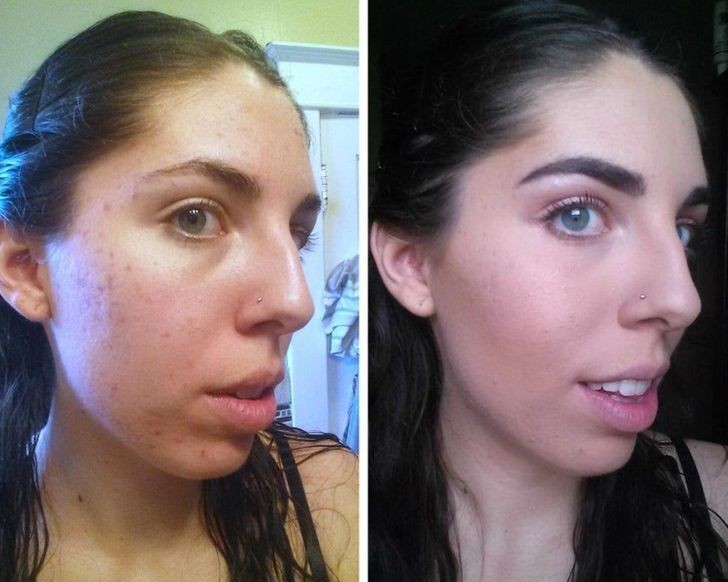19. Lewe zdjęcie jest bez makijażu. Prawe to to, co mężczyźni mają na myśli, gdy mówią, że lubią kobiety bez makijażu.