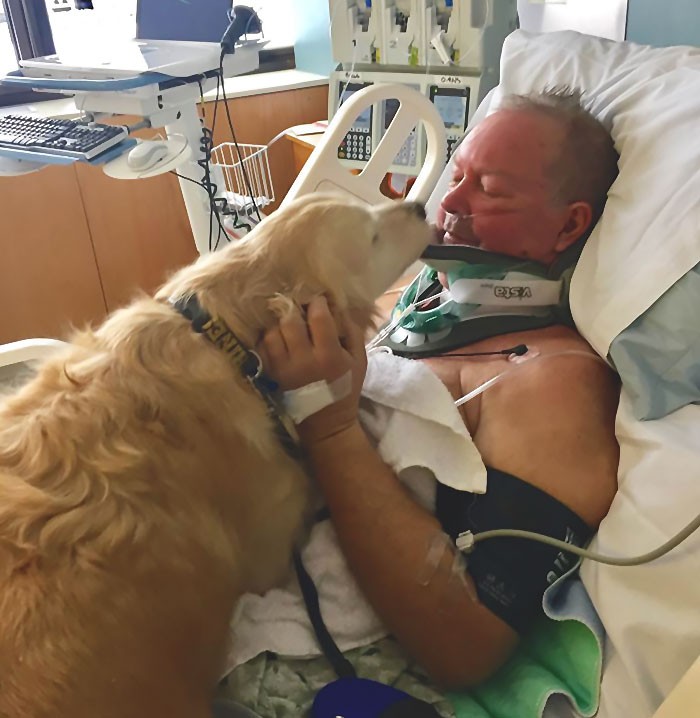 4. Czworonóg wspierał swojego pana podczas pobytu w szpitalu