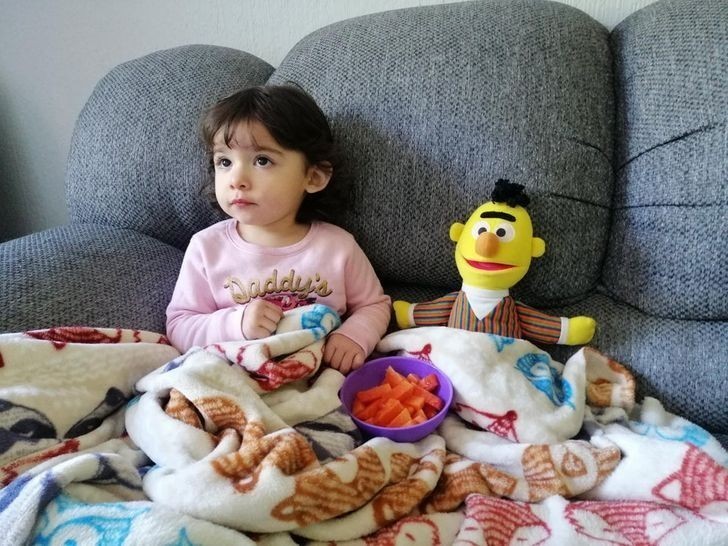20. "Przez cały dzień sprzątałam mieszkanie w stresie, ale widok mojej córki siedzącej z jej Bertem i papają poprawił mi humor."