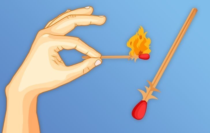 Zapalanie zapałki na wietrze to jedna z bardziej irytujących czynności, która może zostać jednak znacznie ułatwiona. Wystarczy, że z wyprzedzeniem ostrugasz zapałkę tak, jak pokazano to na obrazku. Dzięki temu płomień będzie większy i trudniejszy do zdmuchnięcia.