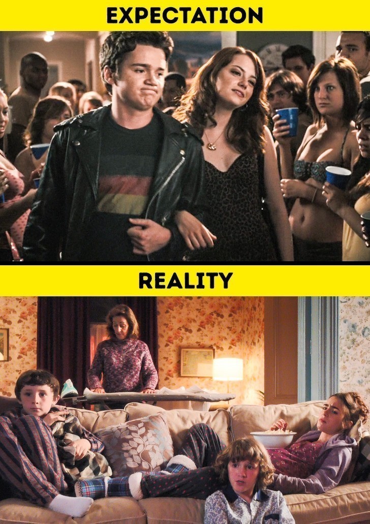 W wielu amerykańskich filmach, nastolatkowie żyją ciągłymi imprezami urządzanymi dla całej szkoły. W rzeczywistości, nawet jeżeli ktoś raz na jakiś czas urządzi imprezę, to odbywa się ona w gronie znajomych, a nie całego tłumu przypadkowych nastolatków.