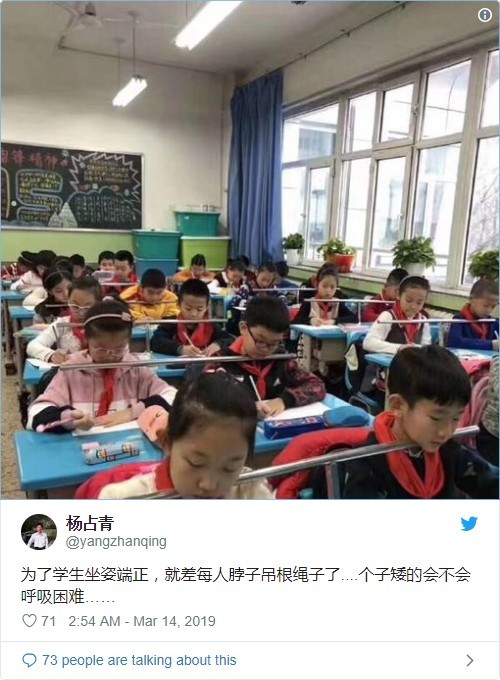 W wielu chińskich szkołach przy ławkach montowane są poprzeczki, które uniemożliwiają dzieciom zbytnie pochylanie głowy przy czytaniu. Czytanie z bliska męczy bowiem oczy, a na dłuższą metę pogarsza wzrok.